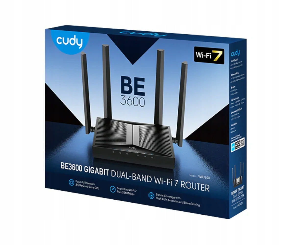 Router Cudy WR3600 to zaawansowane urządzenie, które zapewnia wyjątkową wydajność, stabilność oraz szerokie możliwości zarządzania siecią. Dzięki najnowszym technologiom, takim jak Wi-Fi 7 oraz wsparciu dla dużej liczby urządzeń, Cudy WR3600 jest idealnym rozwiązaniem dla domów i biur, w których wymagana jest niezawodna sieć o wysokiej prędkości.