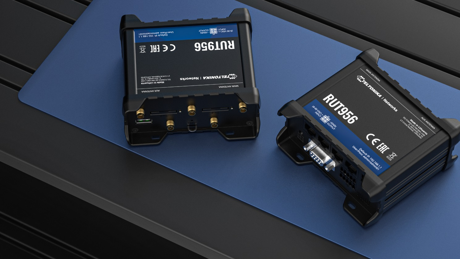 RUT956 to profesjonalny router przemysłowy dual SIM LTE 4G, z Wi-Fi, z portem WAN i portami LAN Gigabit. Zapewnia automatyczne przełączanie awaryjne sieci WAN pomiędzy kartami SIM i portem kablowym WAN RJ45 w przypadku utraty połączenia podstawowego. Szeregowe interfejsy komunikacyjne RS232 (DB9) i RS485 umożliwiają integrację bardziej zróżnicowanych urządzeń z siecią, nawet tych starszego typu. RUT956 wyposażony jest w zaawansowane funkcje oprogramowania przemysłowego, w tym protokół Modbus, SNMP, TR-069, NTRIP, MQTT i wiele sieci VPN.