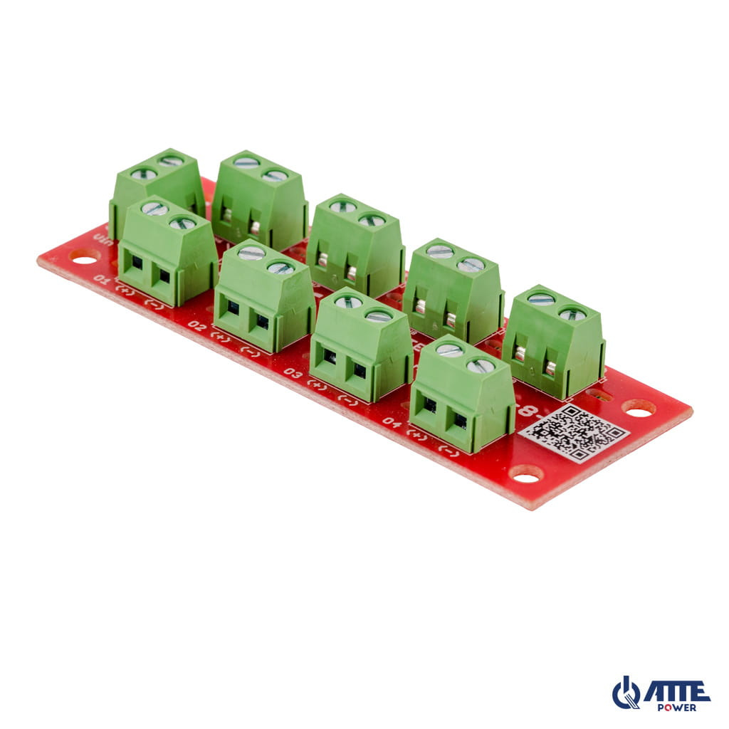 Moduł bezpiecznikowy pozwala na rozdzielenie zasilania do 8 odbiorników. Każde wyjście zasilania posiada niezależne zabezpieczenie przeciążeniowe i przeciwzwarciowe a obecność napięcia na poszczególnych wyjściach sygnalizuje czerwona dioda LED.