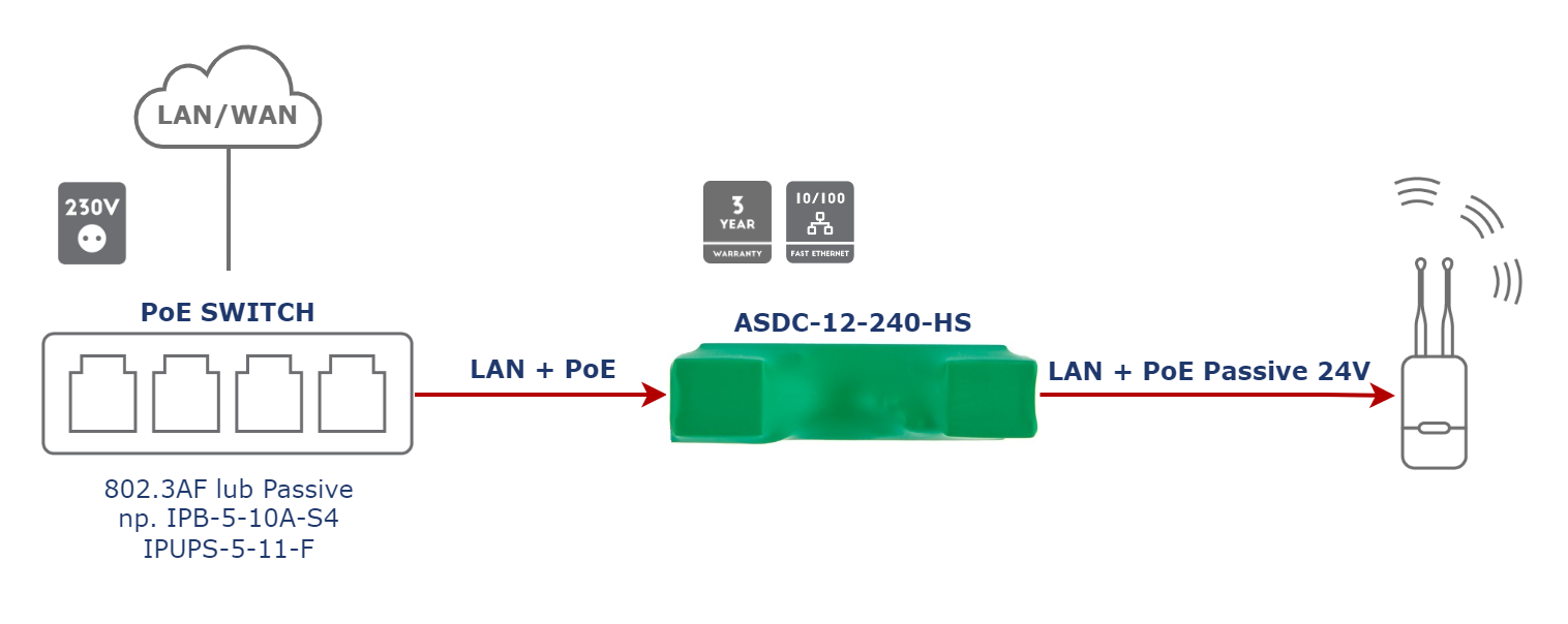 Przykładowe zastosowanie adaptera PoE ASDC-12-240-HS