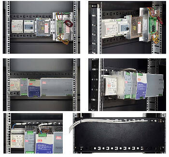 - Blacha montażowa A19-TS-35/BL-4U przeznaczona jest do montażu urządzeń na szynę DIN w tylnej części szafy Rack 19” Połączenie szyny wraz z blachą gwarantuje sztywne zamontowanie urządzenia na szynie włącznie z możliwością przymocowania kabli zasilających/