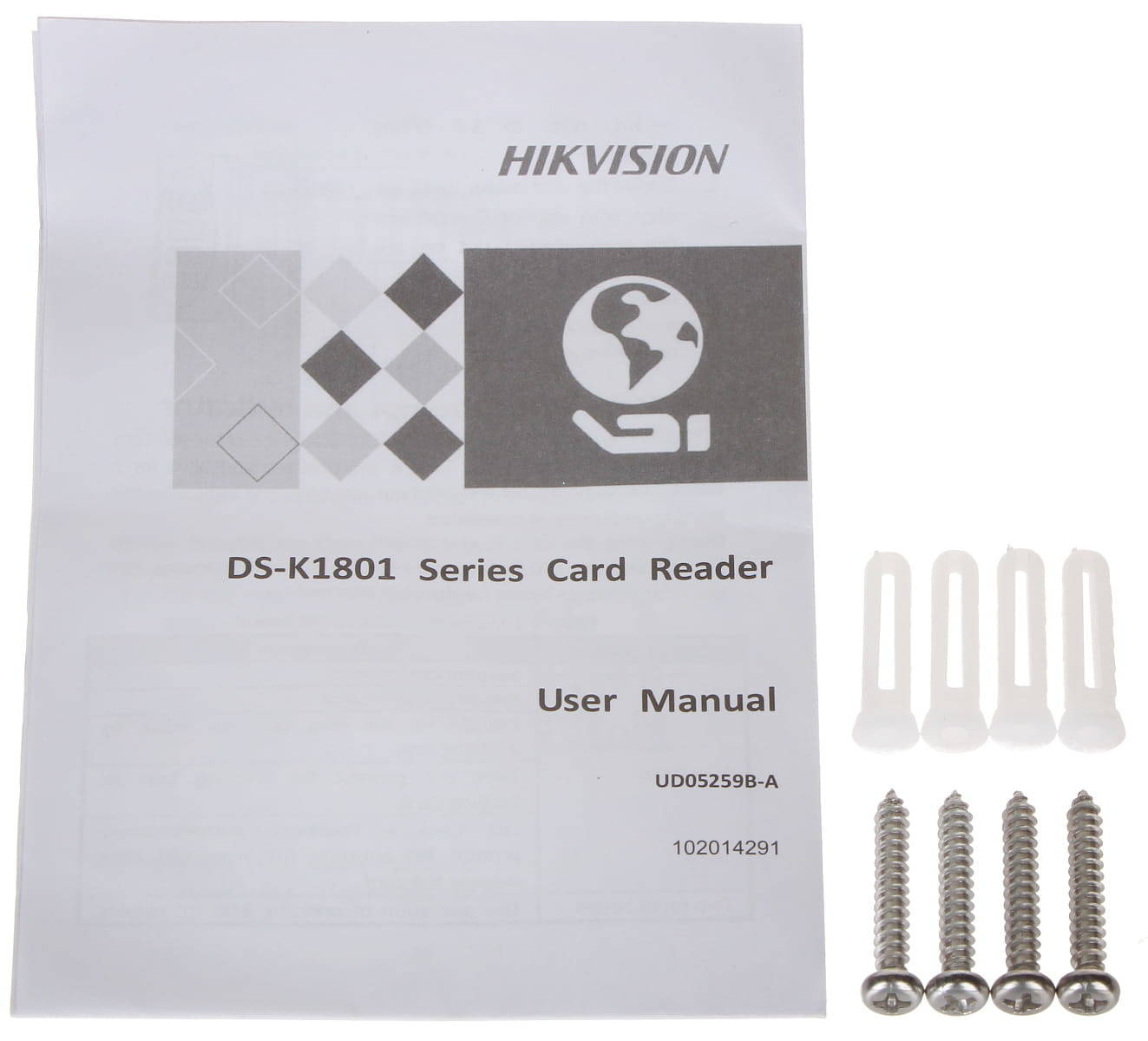 DS-K1801E to model czytnika zbliżeniowego współpracującego z kartami EM 125kHz. Posiada również fukcję rozpoznawania numeru karty.
