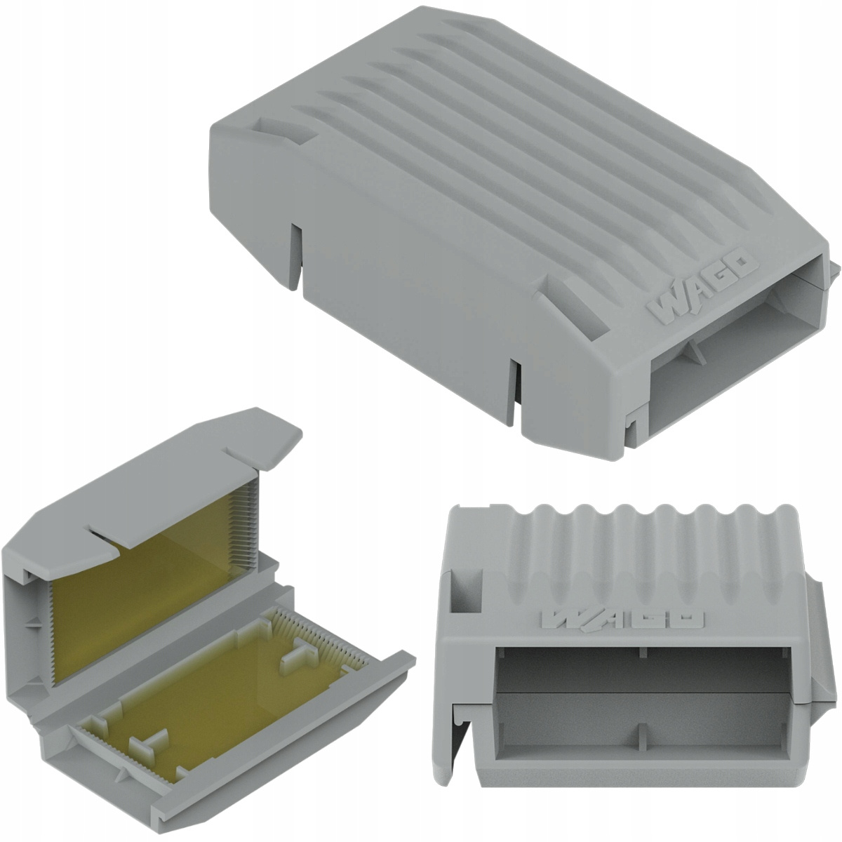 Mufa kablowa żelowa przelotowa renomowanej marki WAGO przeznaczone są do zabezpieczania połączeń żył fazowych przed działaniem pyłu, wilgoci czy wody.