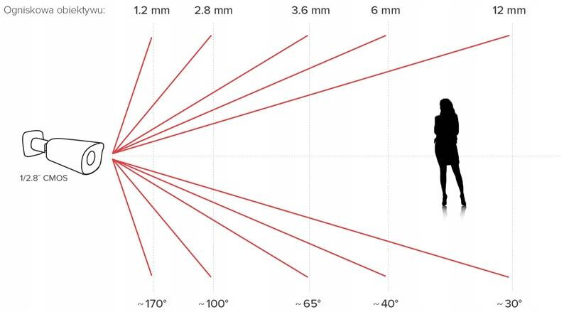 Wykorzystywany w kamerze przetwornik CMOS w rozmiarze 1/1.8 cala oraz obiektyw o stałej ogniskowej 2.8mm pozwalają na uzyskanie szerokiego kąta obserwacji do ok. 102° w poziomie. Tak szeroki kąt obserwacji sprawia, iż prezentowana kamera nadaje się idealnie do realizowania podglądu i nagrywania ogółu zdarzeń w obrębie monitorowanego obiektu.