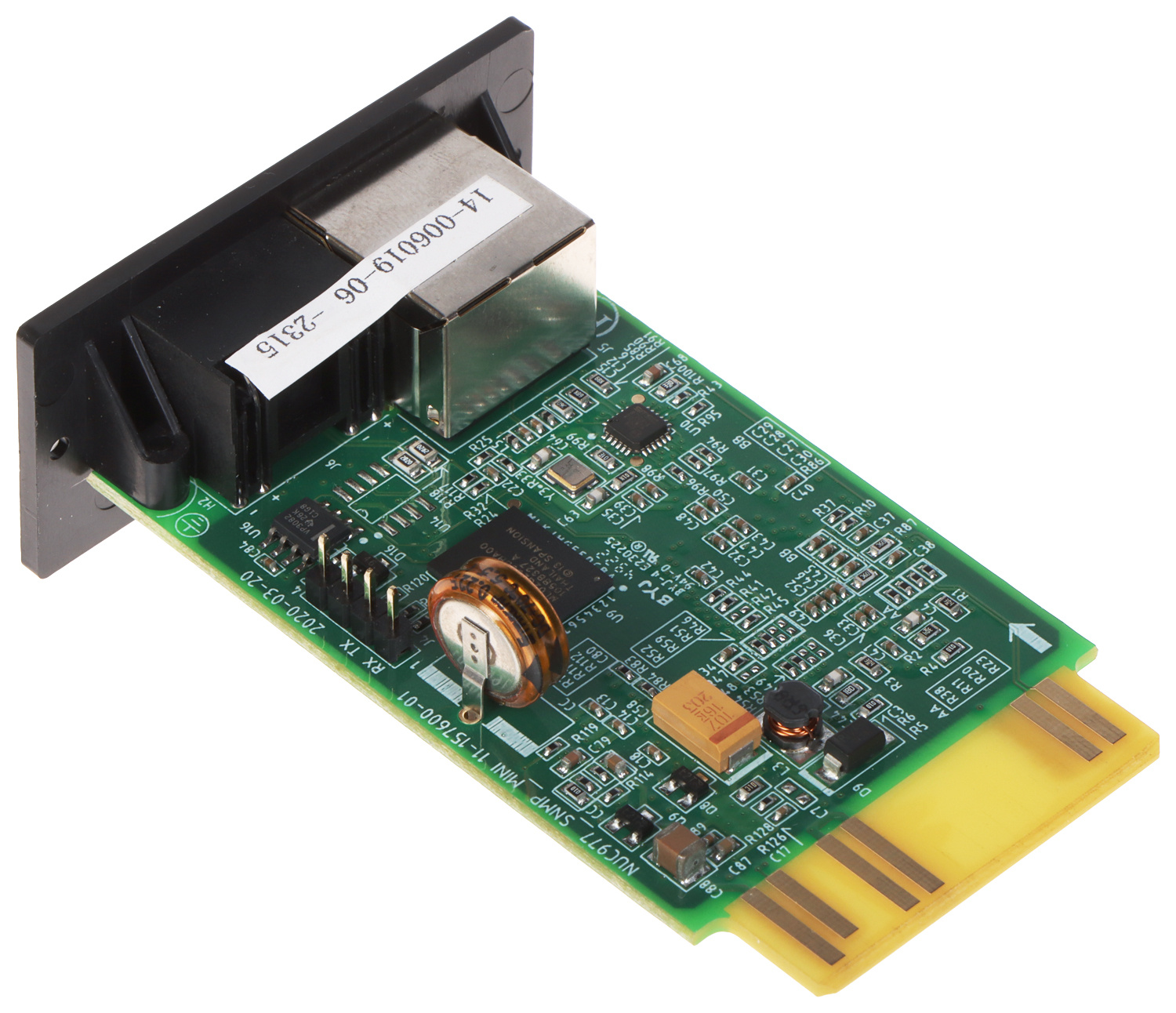 Fakt zainstalowania modułu komunikacji SNMP znacząco zwiększa możliwości kontroli stanu pracy zasilacza i pozwala na szybką reakcje w sytuacji awarii lub wystąpienia innego zagrożenia wynikającego z zakłóceń w pracy. Z pomocą modułu SNMP użytkownik otrzymuje możliwość podglądu w czasie rzeczywistym poszczególnych parametrów zasilacza oraz jest w stanie ustawić odpowiednie powiadomienia alarmowe, które zostaną wysłane w przypadku przekroczenia wartości krytycznych. Montując moduł ethernet UPS w zasilaczu użytkownik otrzymuje również bezpośredni dostęp do funkcji związanej z zarządzaniem zasilaniem urządzenia podtrzymującego. Dzięki tej funkcjonalności użytkownik w dowolnej chwili może włączyć lub wyłączyć UPS-a bez potrzeby fizycznej obecności w jego pobliżu. Do modułu dołączono stosowne oprogramowanie, które umożliwia łatwe wyszukanie odpowiedniego zasilacza po adresie IP, a sama konstrukcja umożliwia bezproblemowy montaż w UPS-ie.