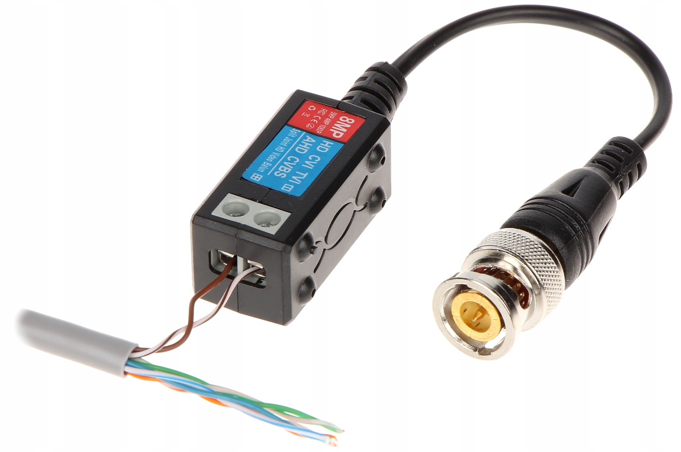 W zestawie znajdują się 2 sztuki konwertera (do realizacji jednego połączenia kamera-rejestrator).