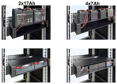 - Rozmiar obudowy pozwala umieścić w niej akumulatory: 4 x 7 Ah / 2 x 17 Ah