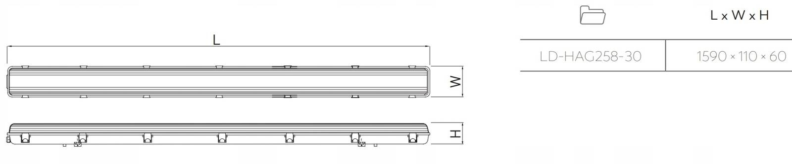 Oprawa hermetyczna HAGEN LED 258, T8 LED, G13, AC220-240V, 50/60Hz, IP65, PC/PC.