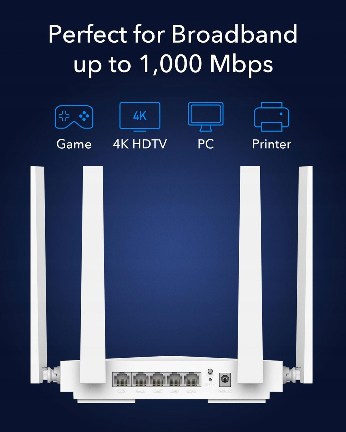 • Porty: 5 portów Gigabit Ethernet (1 WAN + 4 LAN).