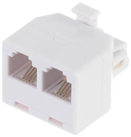 Rozgałęźnik RJ11 na 2 porty Specyfikacja techniczna: Rodzaj złącza: Rozgałęźnik RJ 11 Wtyk / 2 x RJ 11 Gniazdo Materiał: PET Wybrane cechy:Bardzo prosty i szybki montażOdporność na korozję Waga: 0.010 kg Wymiary: 35 x 25 x 20 mm Gwarancja: 2 lata