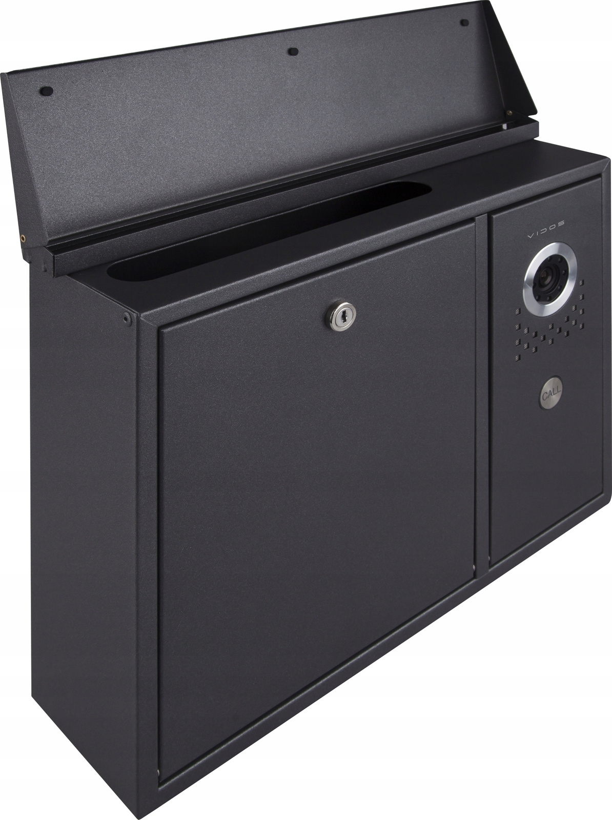 Skrzynka na listy z wideodomofonem, natynkowa, jednowrzutowa, stal ocynkowana lakierowana proszkowo, kolor grafit