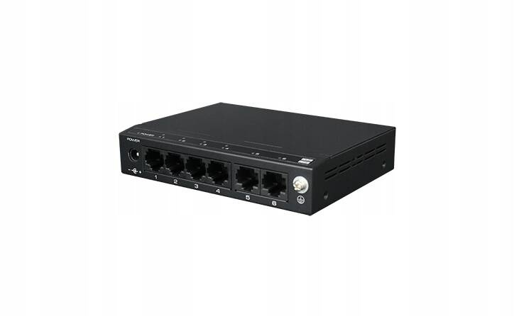 - Główne porty: 4x porty downlink z obsługą PoE, 2x porty uplink;