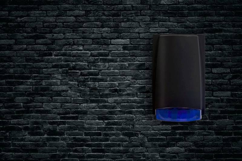CZARNY SYGNALIZATOR DOBRZE PASUJE NA CIEMNĄ ELEWACJĘ BUDYNKU.