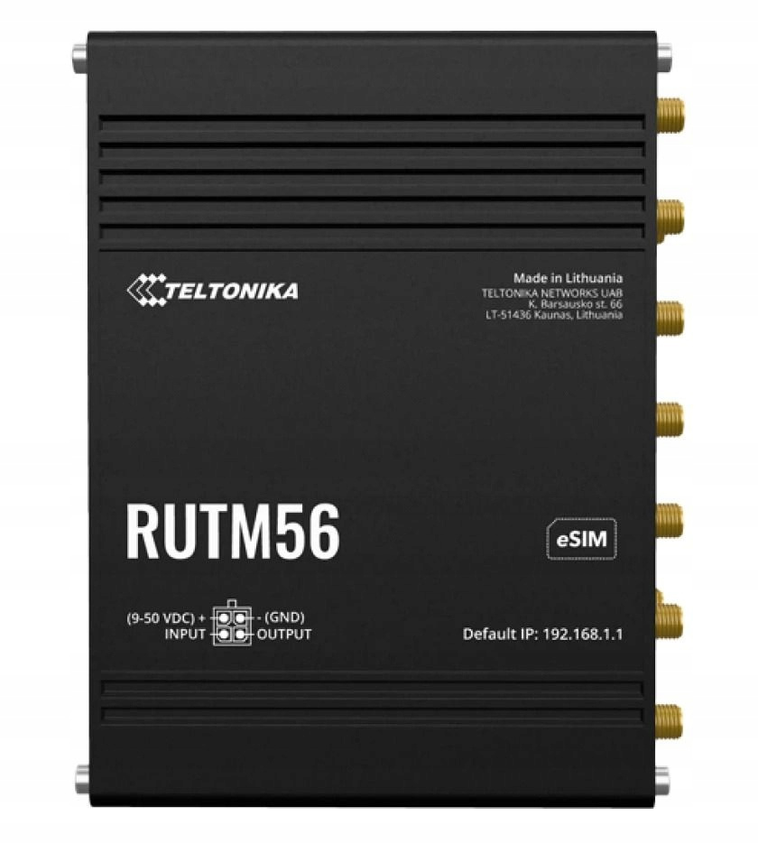 Teltonika RUTM56 to wydajny router przemysłowy klasy premium z obsługą 5G Sub-6 GHz, LTE Cat 4, dual SIM + eSIM, Wi-Fi 5, GPS/GNSS oraz zdalnego zarządzania przez Teltonika RMS.