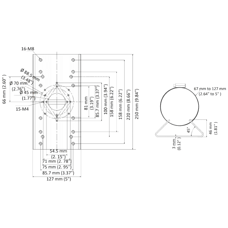 Zakres średnicy słupa: Ø 67 - Ø 127 mm