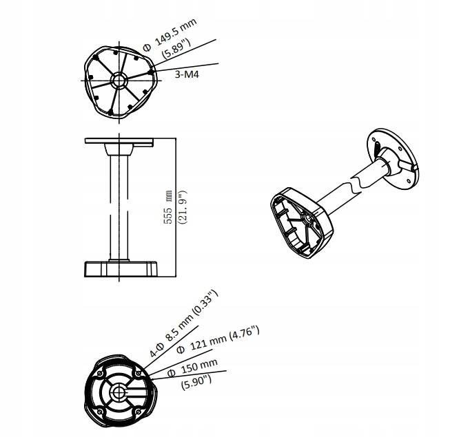 Uchwyt DS-1271ZJ-DM25 przeznaczony jest do pionowego montażu kamer kopułowych serii Fish Eye. Wykonany jest z aluminium, dzięki czemu charakteryzuje się wysoką wytrzymałością i stabilnością. Wyposażony jest w przepust kablowy, ułatwiający instalację przewodów. Wodoodporna guma jest niezbędna do zastosowań zewnętrznych.