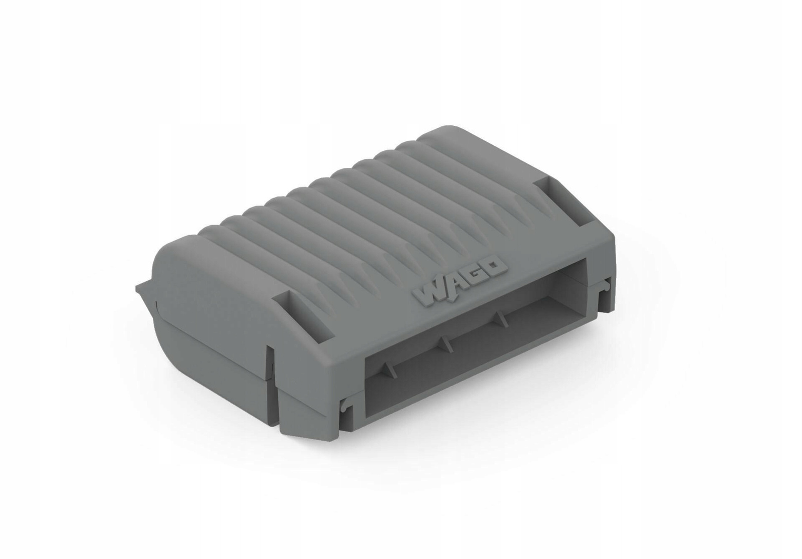 • Żelowany pojemnik na złączkę Wago wykonany jest z polipropylenu, w kolorze szarym.