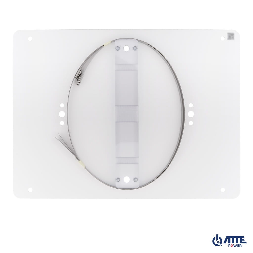 W zestawie: blacha montażowa z aluminium malowanego proszkowo na biały, matowy kolor uchwyt z bezbarwnego poliwęglanu z prowadnicami dla opasek stalowych 2 opaski stalowe nierdzewne z zamkiem kulowym komplet śrub montażowych.