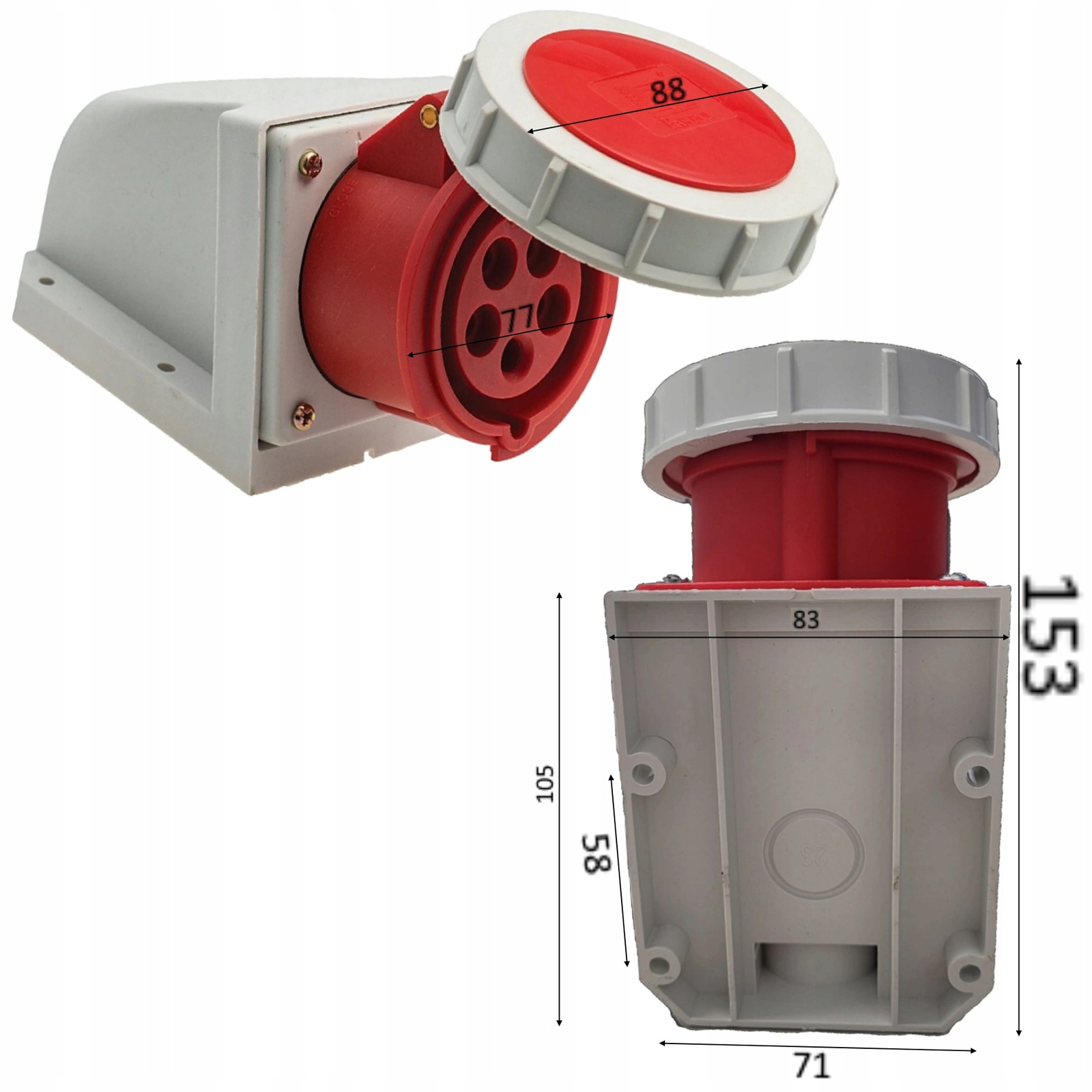 - Średnica pokrywy gniazda: 88 mm