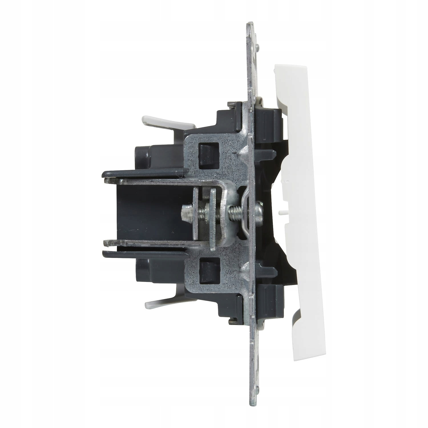 Łącznik schodowy - 10 AX - 250 V~ - zaciski automatyczne. Łącznik służy do włączania i wyłączania oświetlenia. Mechanizm wymaga dodania ramki. Kolor Biały.