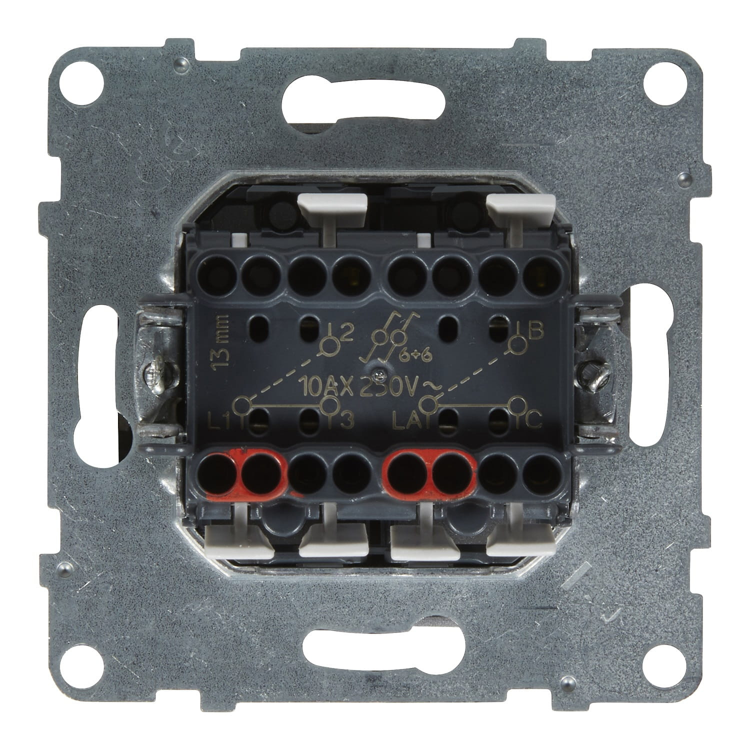 Łącznik schodowy podwójny - 10 AX - 250 V~ - zaciski automatyczne. Łącznik służy do włączania i wyłączania oświetlenia. Mechanizm wymaga dodania ramki. Kolor Biały.