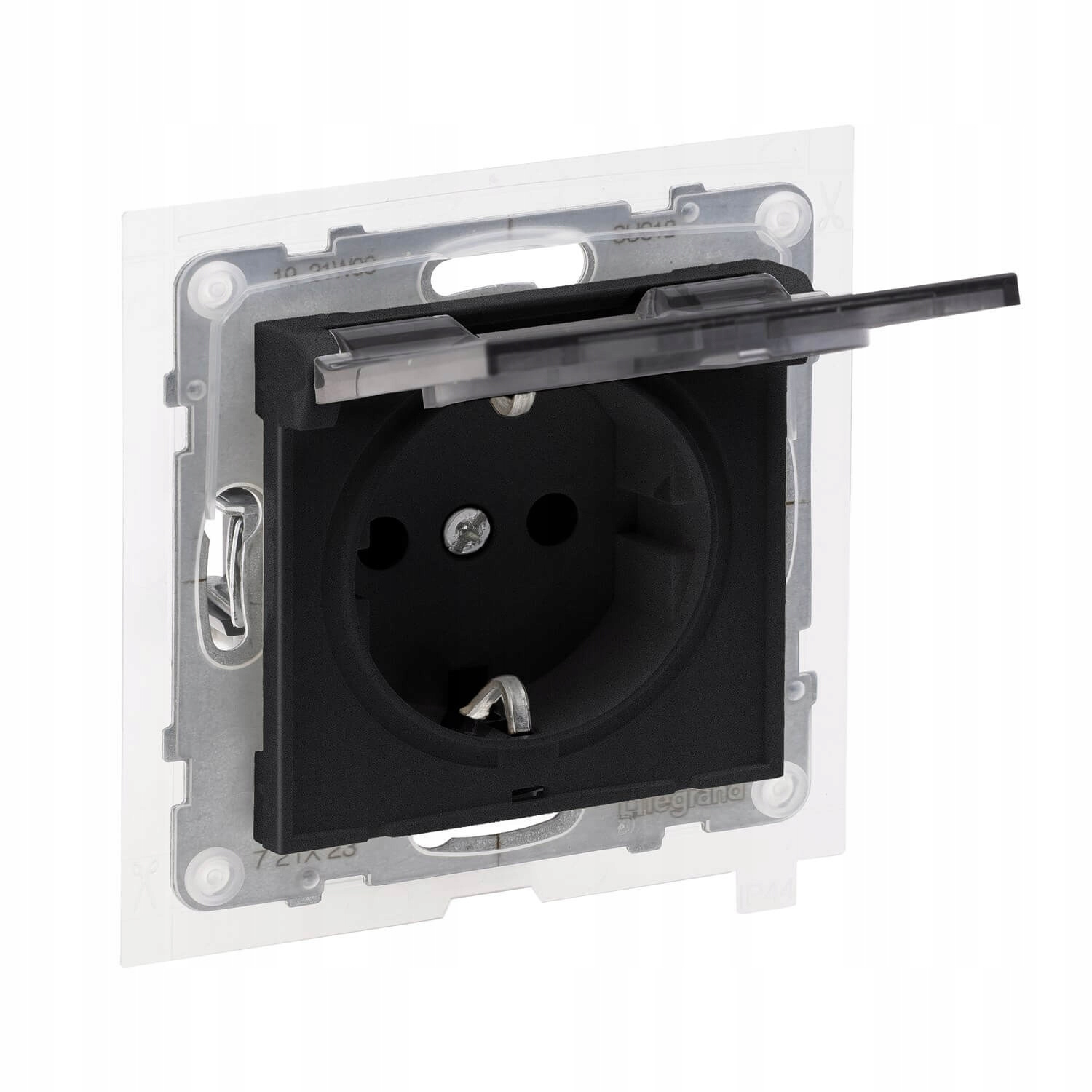 LEGRAND Suno CZARNE Gniazdo zasilające z przesłoną IP44 Schuko 721423