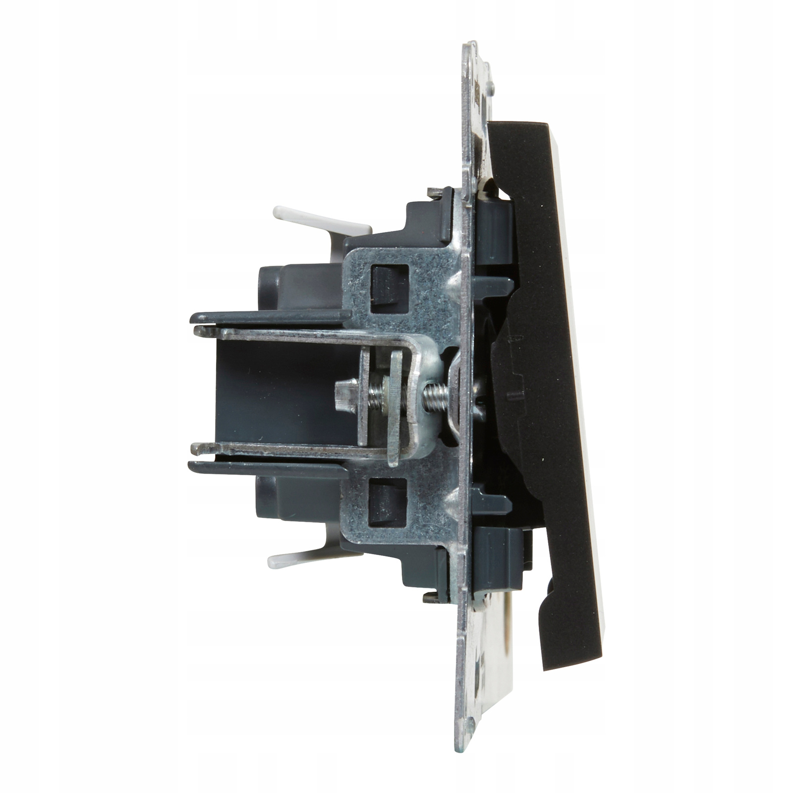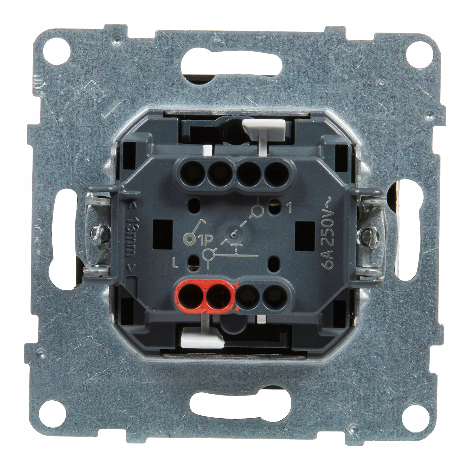 UWAGA! Przycisk działa na zasadzie łącznika zwiernego "dzwonkowego" - odbija po naciśnięciu Przycisk pojedynczy - 6 A - 250 V~ - zaciski automatyczne. Przycisk służy do włączania i wyłączania oświetlenia, dzwonka i timera. Mechanizm wymaga dodania ramki. Kolor Czarny .