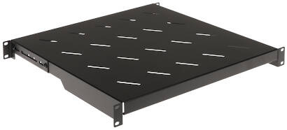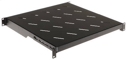 - Regulowana półka do szafy RACK 19", przeznaczona do montażu urządzeń nie posiadających obudowy przystosowanej do montażu w szafach RACK