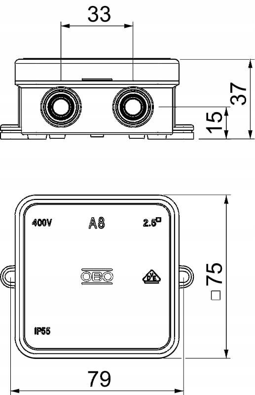 Puszka rozgałęźna 75x75x36mm IP55 OBO 2000016 A8