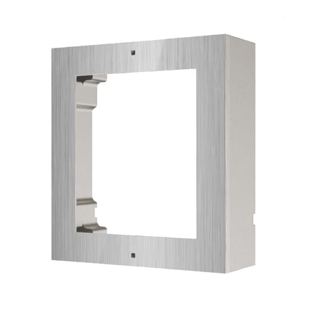 DS-KD-ACW1/S to ramka natynkowa dedykowana do montażu systemu wideodomofonowego IP Hikvision drugiej generacji. Wykonana ze stopu aluminium, pozwala na bezpieczny i estetyczny montaż 1 modułu.