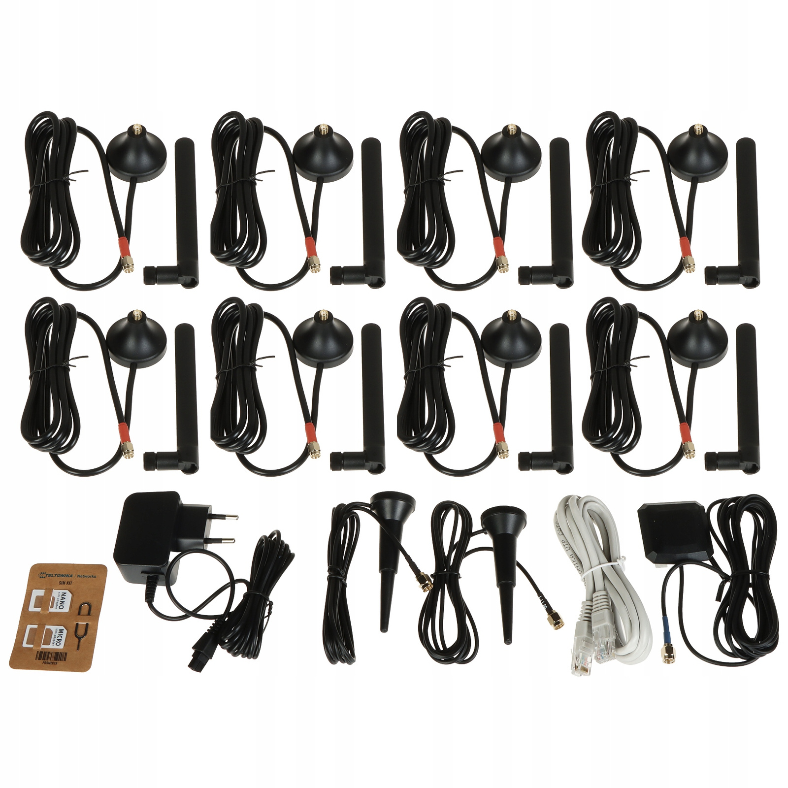 - Typ anteny: 2 x Antena dookólna Wi-Fi (złącze SMA-RP), 8 x Antena dookólna 5G/4G (złącze SMA), 1 x Antena dookólna GNSS (złącze SMA)