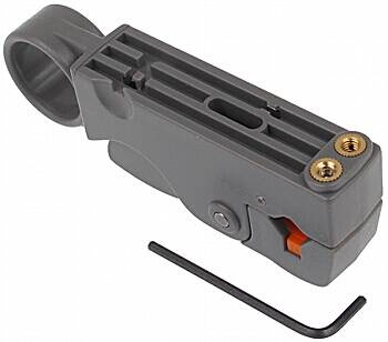 Ściągacz to przydatne urządzenie dla instalatora, który często zarabia końcówki przewodów koncentrycznych. Urządzenie wyposażone jest w dwa nastawne nożyki regulowane znajdującym się w komplecie kluczykiem. Regulacja szerokości pozostawionego ekranu - 4, 6, 8 i 12 mm.