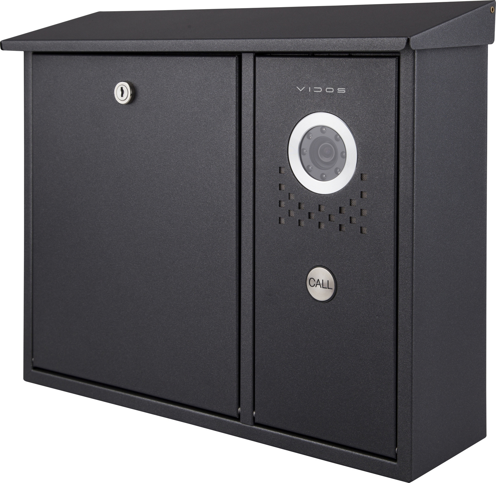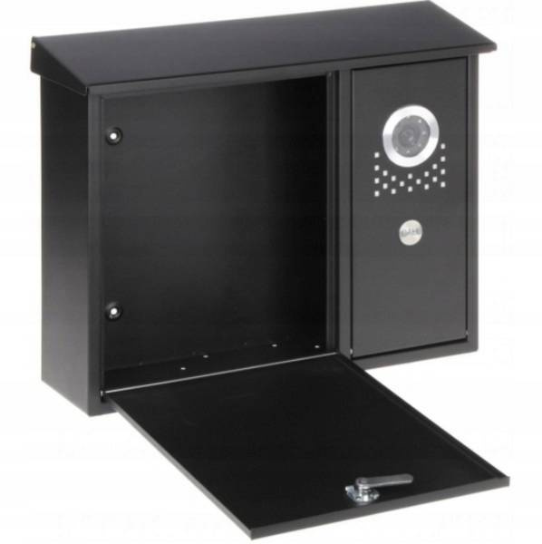 Skrzynka na listy z wideodomofonem, natynkowa, jednowrzutowa, stal ocynkowana lakierowana proszkowo, kolor grafit