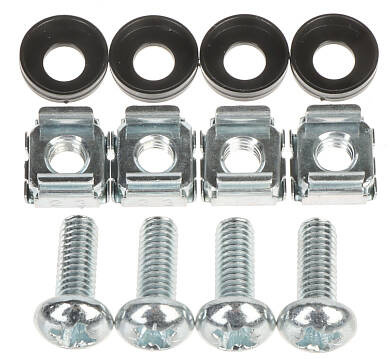Cztery śruby do mocowania wyposażenia szaf RACK 19" / RACK 10" do szyn montażowych.