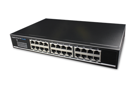 Wysokiej jakości niezarządzalny przełącznik gigabitowy został zaprojektowany specjalnie inżynierii sieciowej, zapewniając 24 *porty 10/100/1000Mbps RJ45. W trybie domyślnym, przełącznik obsługuje wykrywanie pętli przełączania i przypomina o konieczności sprawdzenia portu, w którym wystąpiła pętla, w czasie rzeczywistym poprzez alarmujący wskaźnik LED.
