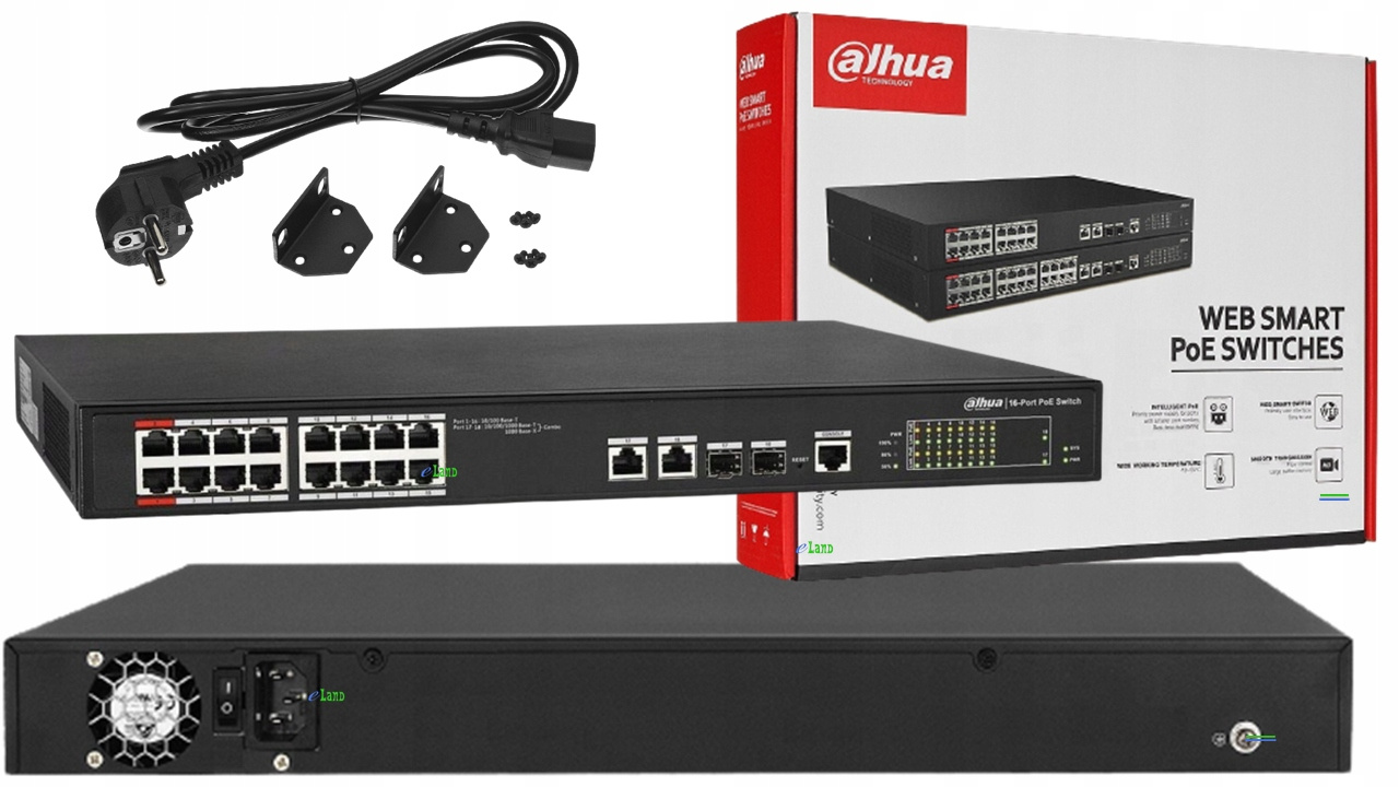 PFS4218-16ET-240-V3 to zarządzalny switch PoE marki Dahua, wykorzystywany do budowy systemów monitoringu IP. Przemysłowy switch wyposażony został w 16 portów RJ45 10/100Mbps z obsługą technologii PoE 802.3af/at (power over ethernet) oraz 2 porty RJ45 Uplink 1 Gbps współdzielone (Combo) z 2 portami na wkładki SFP. Urządzenie wspiera standardy IEEE 802.3af, IEEE 802.3at oraz IEEE802.3bt <90W (2 pierwsze porty). W switchu PFS4218-16ET-240-V3 całkowity budżet zasilania PoE dla podłączonych urządzeń wynosi 240W. Nowoczesny przełącznik sieciowy Dahua jest urządzeniem zarządzalnym w warstwie 2. Posiada swój interfejs konsoli z poziomu którego użytkownik ma możliwość pełnej konfiguracji poszczególnych portów oraz różnych funkcji. Dodatkowo przełącznik został wyposażony w technologię PoE 2.0 zawierającą funkcje takie jak: Watchdog PoE, inteligentne PoE oraz wsparcie dla trybu long-distance 250m. Na panelu przednim znajduje się sygnalizacja stanu pracy urządzenia zrealizowana na diodach LED. Prezentowany produkt umożliwia swobodę działania zarówno jako urządzenie wolnostojące, jak i jako element większej instalacji zlokalizowanej np. montaż w szafie RACK 19".