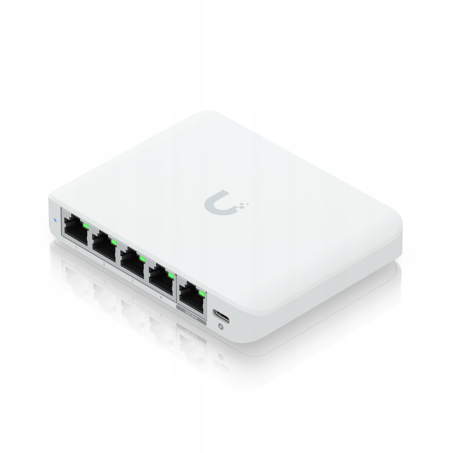 Port wejściowy PoE-in 2,5G Gigabit Ethernet umożliwia łatwe zasilanie przez Power over Ethernet, eliminując potrzebę stosowania dodatkowych zasilaczy lub gniazdek. Maksymalny pobór mocy USW Flex Mini 2.5G to 5 W (AC/DC) i 6,4 W (PoE). UniFi Switch Flex Mini 2.5G oferuje zdolność przekierowania do jednoczesnego przetwarzania ruchu na wszystkich portach z szybkością linii bez utraty pakietów. Aby zwiększyć wszechstronność, przełącznik może być również zasilany za pomocą dołączonego adaptera USB-C 5 V, 1 A, co ułatwia integrację z różnymi środowiskami. Ta elastyczność w zakresie opcji zasilania zapewnia, że Flex Mini można umieścić w różnych lokalizacjach, co czyni go wszechstronnym dodatkiem do sieci.