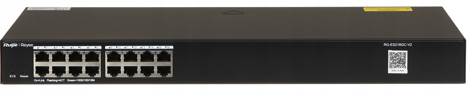 RG-ES216GC-V2 to 16-portowy gigabitowy przełącznik sieciowy bez obsługi PoE, zarządzany w chmurze. Jest przeznaczony do zastosowań w małych i średnich przedsiębiorstwach, hotelarstwie, fabrykach, placówkach edukacyjnych, handlu detalicznym oraz systemach nadzoru CCTV. Dzięki integracji z platformą Ruijie Cloud, umożliwia zdalne zarządzanie i monitorowanie sieci, co upraszcza jej konfigurację i utrzymanie.