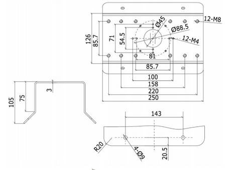 • Wymiary: 126 mm × 105 mm × 250 mm