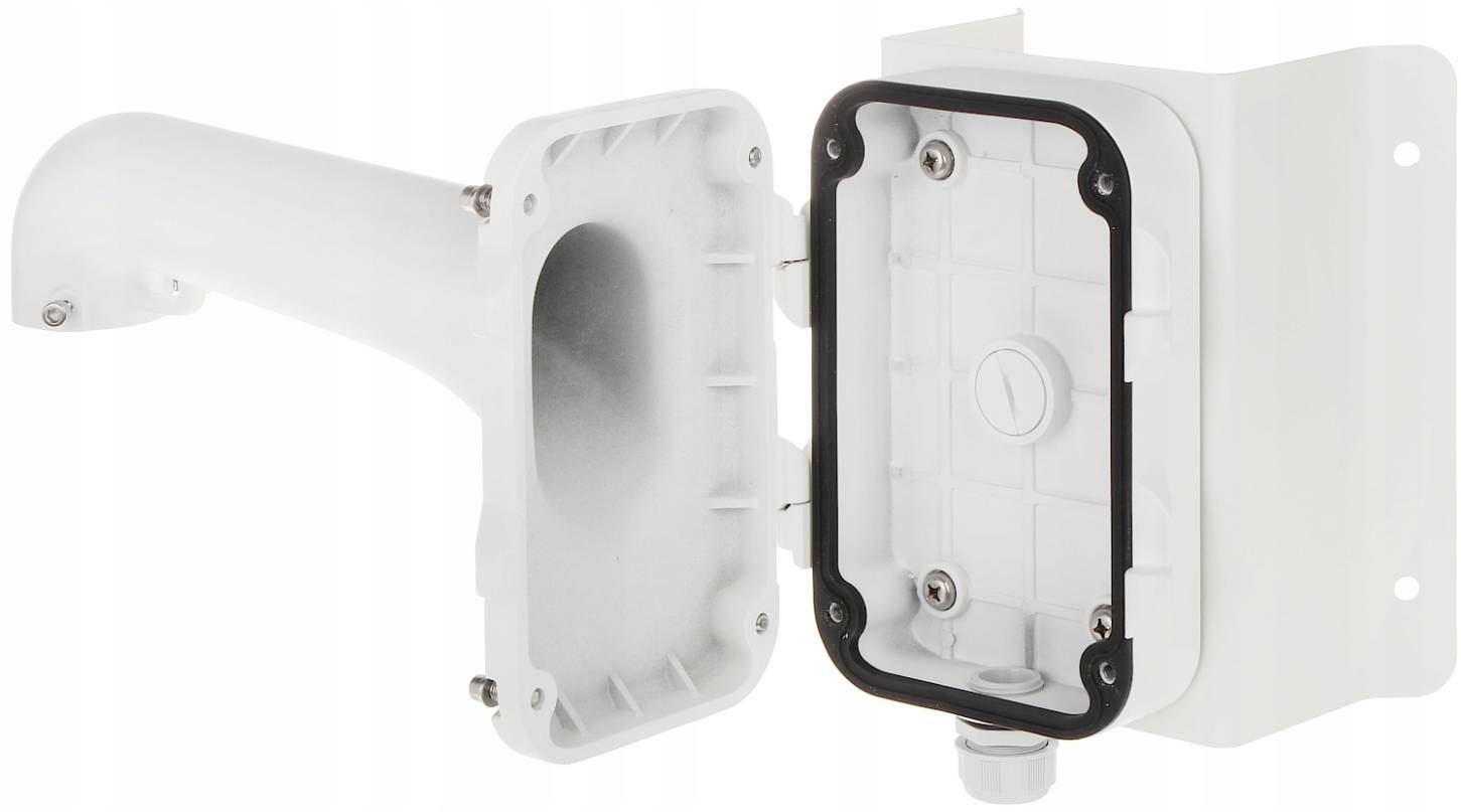 Uchwyt DS-1604ZJ-corner to wysokiej jakości akcesorium montażowe, pomocne w trakcie realizacji stanowisk monitoringu wizyjnego bazujących na nowoczesnych kamerach PTZ Hikvision z serii: 4", 5", 6", 8". Uchwyt zbudowany jest z komponentów aluminiowych i stalowych, które zapewniają odpowiedni poziom niewrażliwości na uszkodzenia mechaniczne, oddziaływanie skrajnych wartości temperatur oraz różnorodnych zjawisk atmosferycznych. Skrzynka połączeniowa posiada dolny wylot i tylny wylot, dając możliwość poprowadzenia okablowania. Uchwyt wyposażony jest w hak do liny zabezpieczającej, który ułatwia instalację szybkiej kopuły. Wodoodporna konstrukcja.
