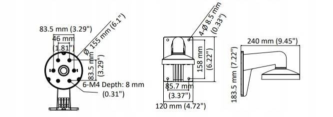 Prezentowany uchwyt do kamer DS-1473ZJ-155 to wysokiej jakości akcesorium montażowe, pomocne w trakcie realizacji stanowisk monitoringu wizyjnego bazujących na nowoczesnych kamerach dome Hikvision. Uchwyt posiada aluminiową konstrukcję zapewniającą odpowiedni poziom niewrażliwości na uszkodzenia mechaniczne, oddziaływanie skrajnych wartości temperatur oraz różnorodnych zjawisk atmosferycznych. Akcesorium zaprojektowane zostało z myślą o przeprowadzaniu szybkiego i sprawnego montażu kamer oraz komfortowej obsługi i modernizacji istniejących struktur ochrony wizyjnej. Adapter naścienny umożliwiający montaż kamery kopułkowej na pionowej konstrukcji lub ścianie. Jest również wymagany przy montażu kamery na słupie lub narożniku.