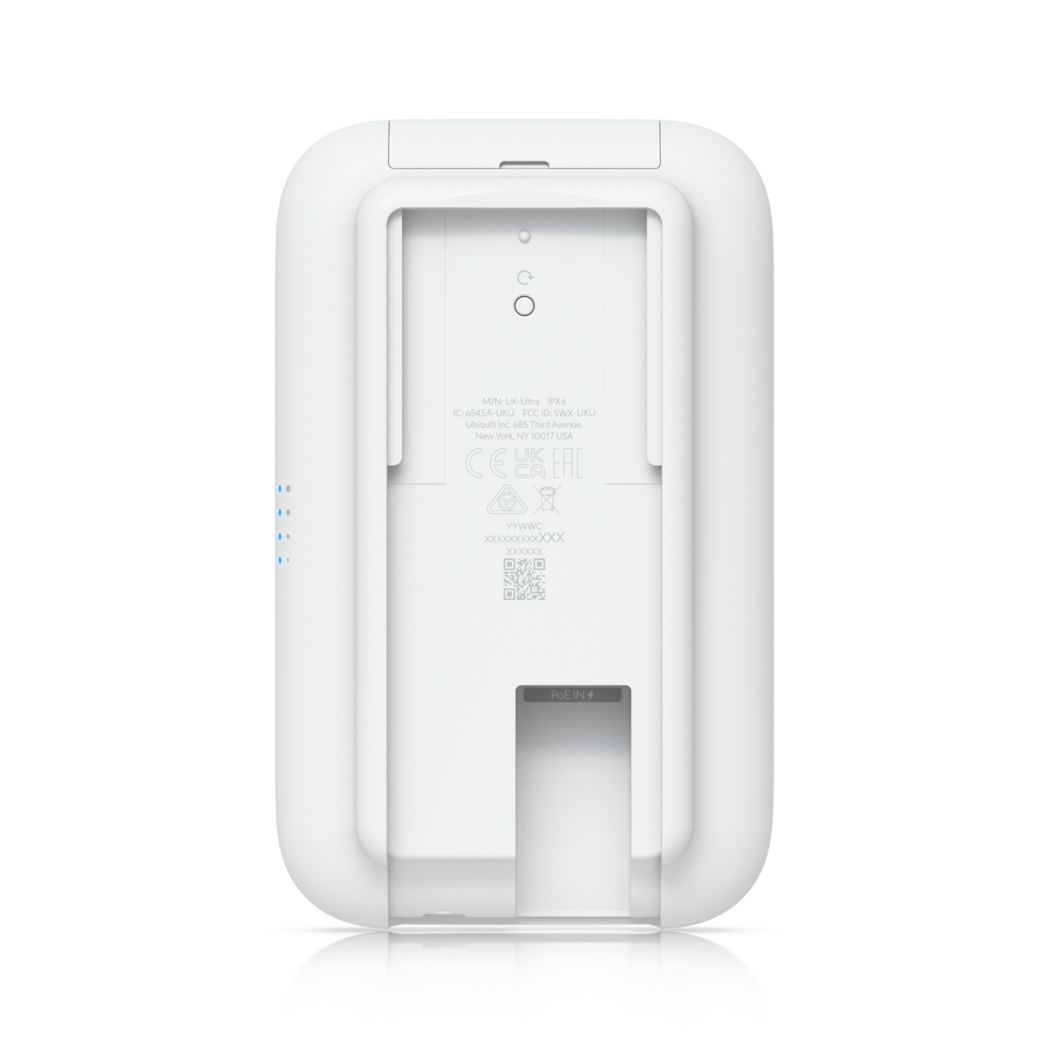 Ubiquiti UK-Ultra jest zasilany z istniejącej sieci Ethernet, eliminując potrzebę stosowania dodatkowych kabli zasilających. Jego kompaktowa obudowa pozwala na dyskretny montaż na ścianie, suficie lub słupie, dzięki czemu idealnie nadaje się zarówno do wdrożeń wewnętrznych, jak i zewnętrznych. Zasięg można rozszerzyć za pomocą dwóch złączy RP-SMA dla opcjonalnych anten zewnętrznych (sprzedawanych oddzielnie). Dodatkowe anteny dookólne lub kierunkowe umożliwiają dostosowanie siły i kierunku sygnału UK-Ultra w celu optymalizacji zasięgu do konkretnych potrzeb.