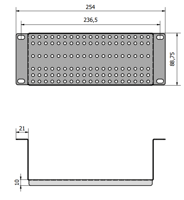 ADD-RACK10-2U2 Adapter montażowy RACK 10" 2U z otworowaniem cofnięty