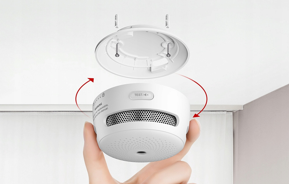 Montaż czujnika jest niezwykle prosty dzięki dołączonemu wspornikowi montażowemu oraz zestawowi śrub i kołków. Funkcja testu/silence pozwala na łatwe sprawdzenie, czy urządzenie działa poprawnie, a także na chwilowe wyciszenie alarmu, co jest przydatne w przypadku fałszywych alarmów. Dioda LED dostarcza informacji o stanie pracy, niskim poziomie baterii oraz wykrytych usterkach, dzięki czemu zawsze wiesz, w jakim stanie jest urządzenie.