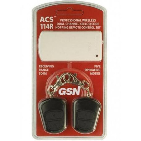 Bezprzewodowy, dwukanałowy, wielofunkcyjny odbiornik ACS-114R, współpracujący z dwoma ręcznymi nadajnikami przyciskowymi, umożliwia zdalne sterowanie dowolnym sprzętem elektronicznym: