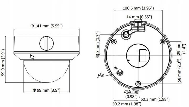 - Wymiary: Kamera: Φ 141 mm × 99.9 mm Z opakowaniem: 140 mm × 140 mm × 154 mm
