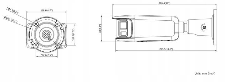 - Wymiary: 118.6 mm × 105.1 mm × 305.4 mm