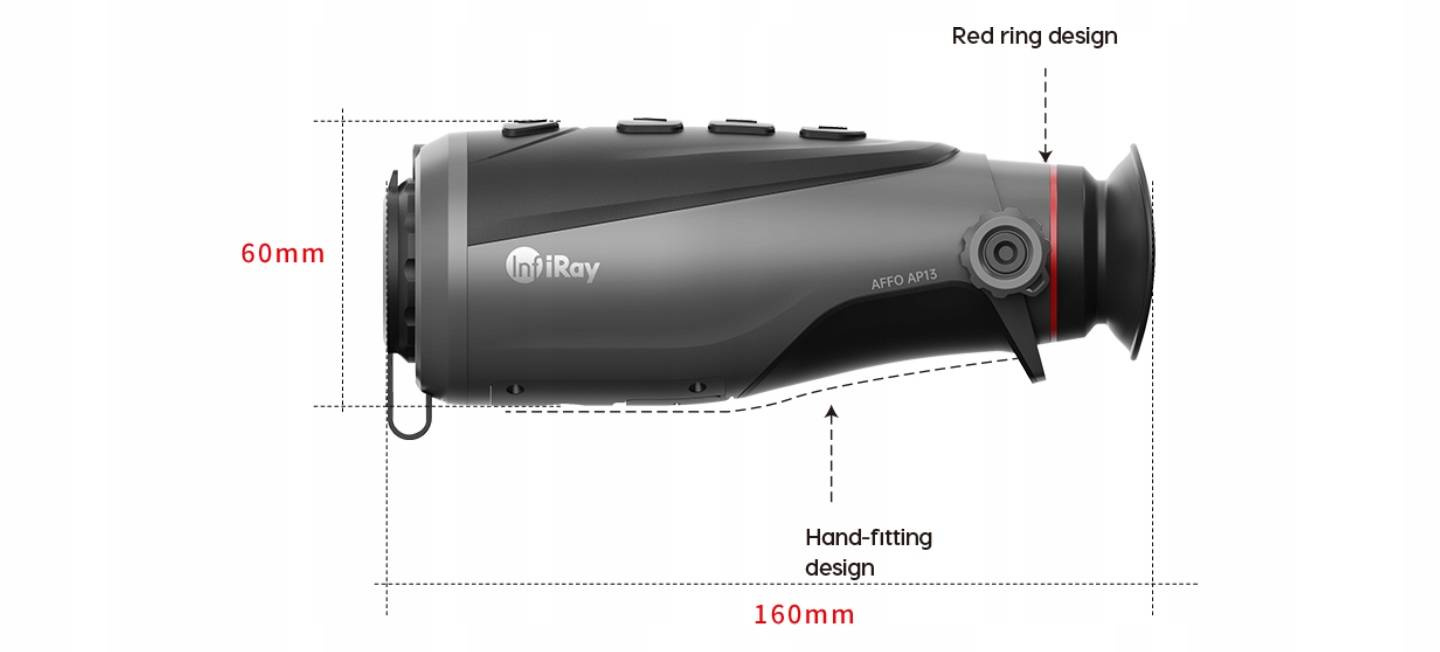 Zaokrąglenia InfiRay AFFO AP13 pasują do kształtu ludzkiej dłoni, co czyni go bardziej komfortowym do trzymania. Dzięki kompaktowemu rozmiarowi, łatwiej jest go nosić przy sobie podczas każdej przygody.
