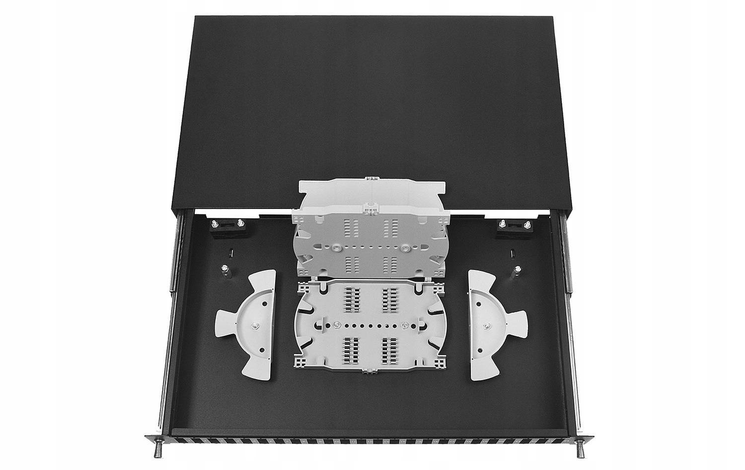 Prostota w konstrukcji zapewnia wygodę oraz komfort użytkowania. W panelu wykorzystane zostały prowadnice umożliwiające wysuwanie się półki, dzięki temu montaż okablowania oraz późniejsza obsługa jest bezproblemowa. Panel frontowy przeznaczony jest do instalacji 24 adapterów SC Duplex, a za stabilność urządzenia odpowiadają dołączone uchwyty, które można zamontować w szafie teleinformatycznej o standardzie RACK 19.