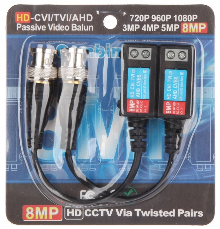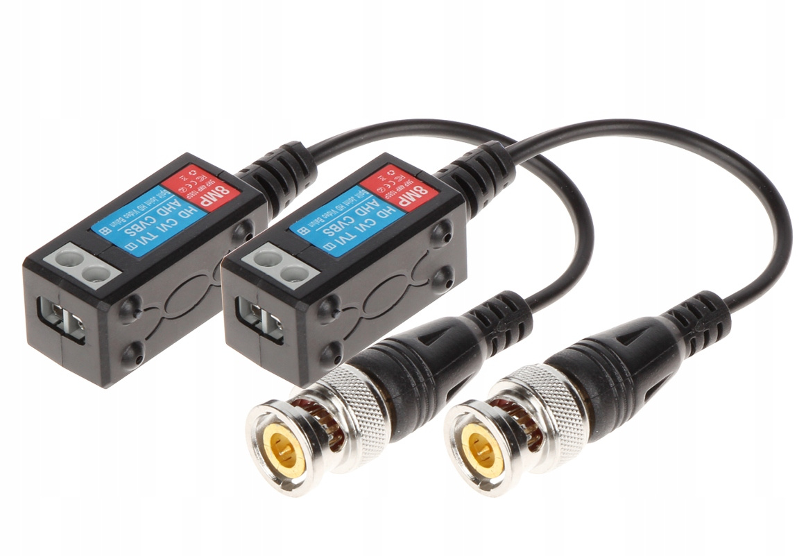 W zestawie znajdują się 2 sztuki konwertera (do realizacji jednego połączenia kamera-rejestrator).